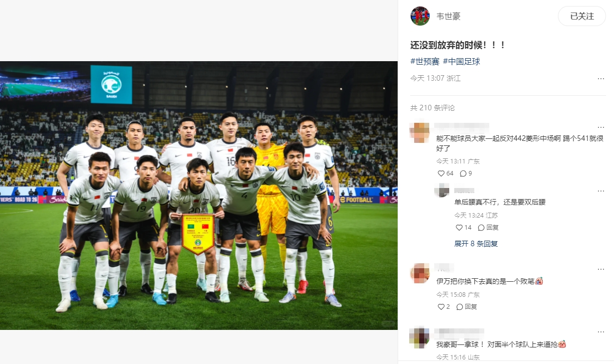 今日韋世豪更新個(gè)人社媒寫道:還沒到放棄的時(shí)候!?。?/p>