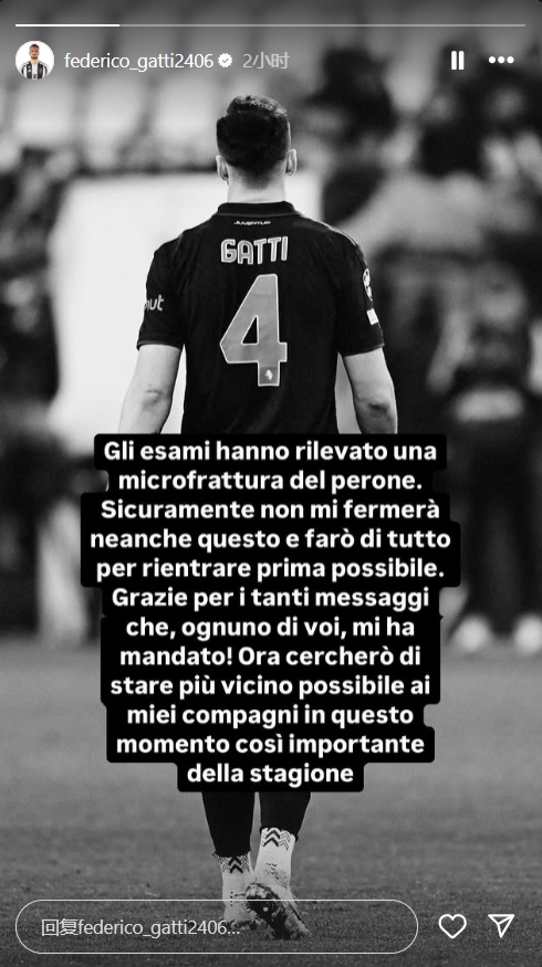 這名中衛(wèi)更新社媒,說道:經(jīng)檢查發(fā)現(xiàn)腓骨出現(xiàn)輕微骨折,這當(dāng)然不會(huì)阻擋我,我會(huì)盡一切努力盡快回來,謝謝你們給我發(fā)來的信息,在本賽季現(xiàn)階段這樣非常重要的時(shí)刻,我會(huì)盡可能與我的隊(duì)友們保持密切聯(lián)系。