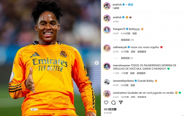 第25分鐘,皇馬攻勢打進禁區(qū),萊加內(nèi)斯禁區(qū)內(nèi)解圍失誤,門前恩德里克輕松破門。他也在賽后通過社媒曬出自己的滑跪慶祝照,并附上“????????????”表情。