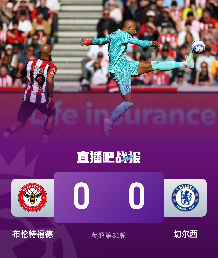 切爾西0-0布倫特福德無緣連勝仍第四 藍(lán)軍21腳射門弗萊肯屢次撲救