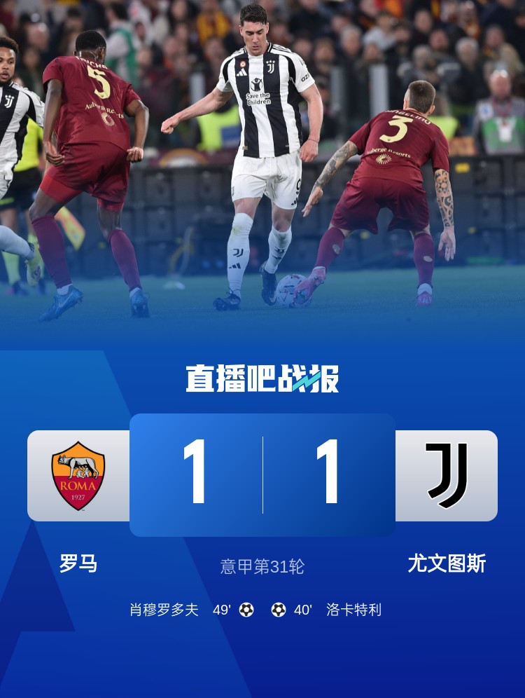 尤文1-1戰(zhàn)平羅馬,羅馬的聯(lián)賽7連勝遭終結(jié),不過紅狼軍團(tuán)的聯(lián)賽不敗場(chǎng)次也來到15場(chǎng)。