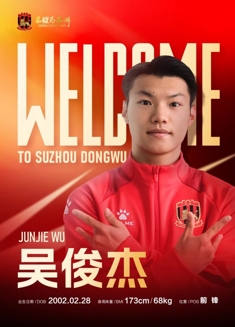 經(jīng)友好協(xié)商并達(dá)成一致,球員文俊杰、胡靖、朱越、蔣志鑫、藏哈爾·拜沙提汗、吳俊杰正式加盟蘇州東吳足球俱樂部,為蘇州東吳出戰(zhàn)新賽季各項(xiàng)賽事。