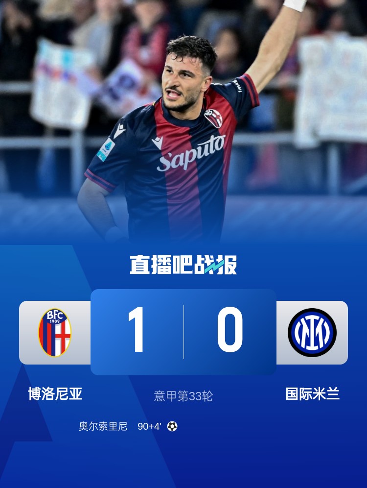 2025年04月21日 讀秒遭絕殺!國(guó)米0-1博洛尼亞凈勝球優(yōu)勢(shì)仍領(lǐng)跑 3天后意杯戰(zhàn)米蘭