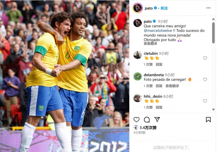 2月7日訊 巴西傳奇球星馬塞洛宣布退役,其昔日巴西國家隊(duì)隊(duì)友帕托也在社媒曬出合影為其送上祝福。
