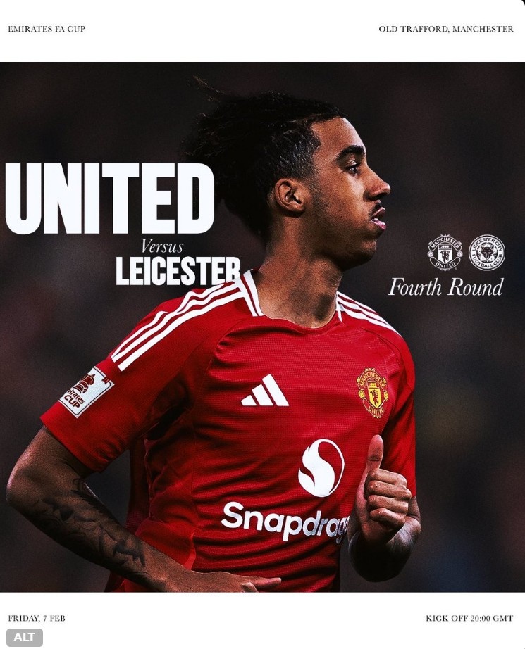 2月7日訊 曼聯(lián)將在足總杯第4輪對(duì)陣萊斯特城,球隊(duì)官推也曬出海報(bào)為本場(chǎng)比賽預(yù)熱,約羅單人出鏡。