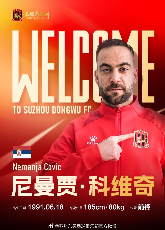 經(jīng)友好協(xié)商并達(dá)成一致,球員尼曼賈 · 科維奇、安德烈耶維奇正式加盟蘇州東吳足球俱樂部,為蘇州東吳出戰(zhàn)新賽季各項賽事。 ??? 標(biāo)簽: 足球 中超 中國足球 中甲 蘇州東吳