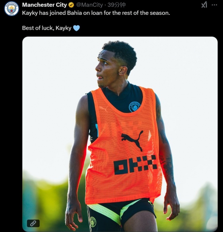 曼城在官方通告中宣布:“凱基將在本賽季剩余階段外租巴伊亞,祝他一切順利?!?/p>