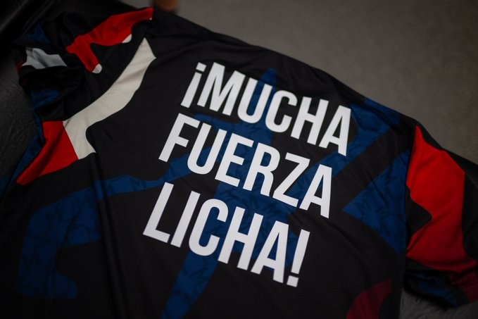這件熱身球衣上寫著:“堅強,Licha!”(Licha為利桑德羅的昵稱)