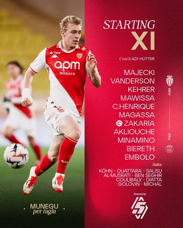 摩納哥替補(bǔ):庫(kù)恩、瓦塔拉、薩利蘇、阿爾穆斯拉蒂、本-塞吉爾、馬馬杜-庫(kù)利巴利、迪亞塔、戈洛文、盧卡斯-米哈爾