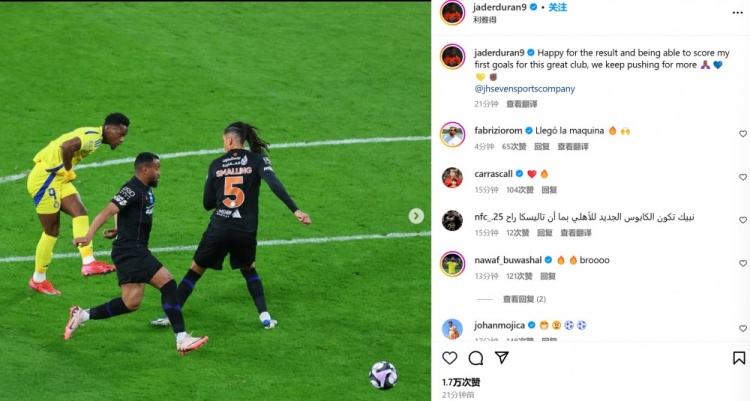 他也在賽后通過社媒曬出自己的比賽照,并配文:“對勝利感到高興,也很開心能夠為這家的偉大俱樂部打進我的處子球,我們會繼續(xù)努力爭取贏得更多?!?/p>