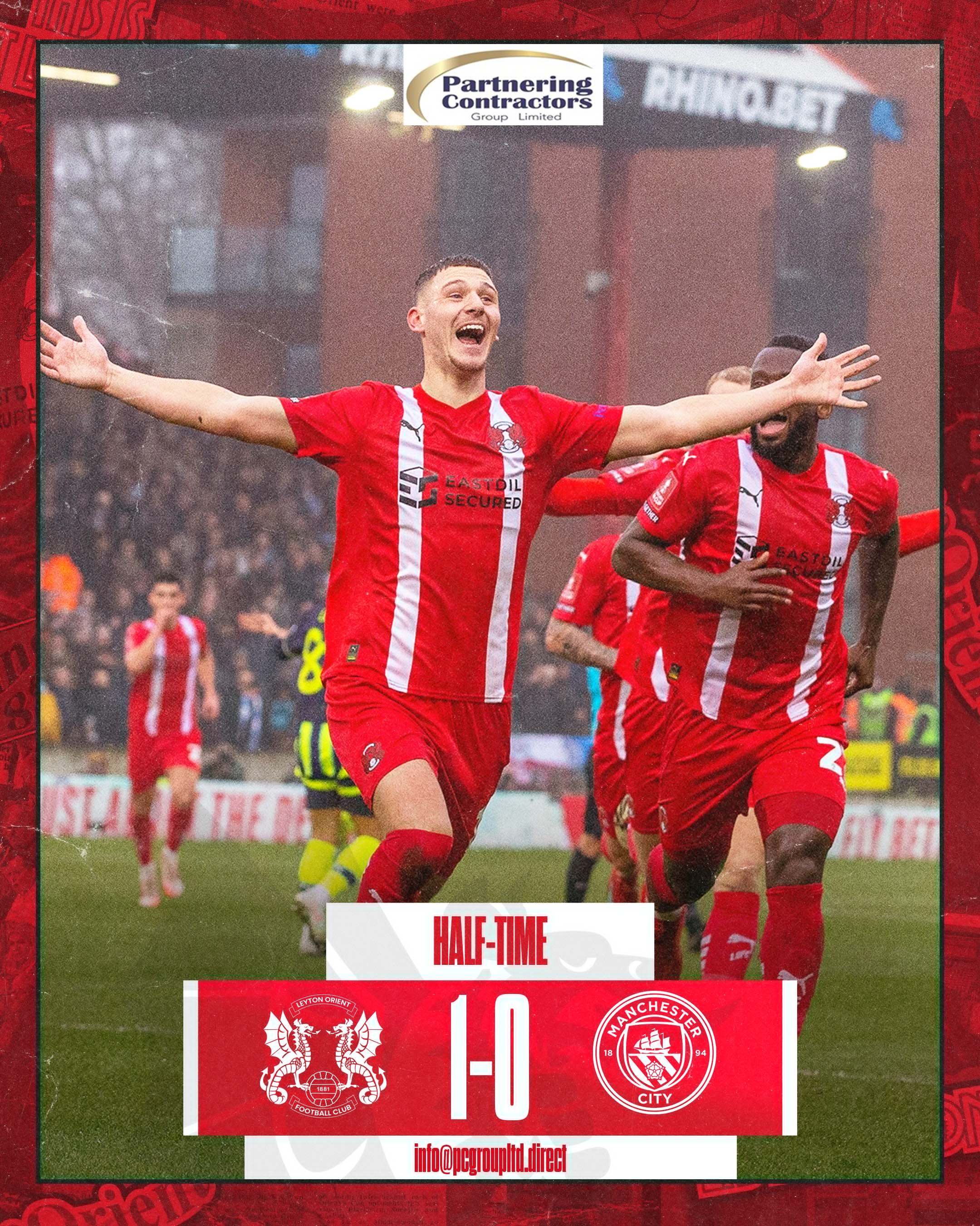 上半場比賽結(jié)束,曼城0-1萊頓東方。