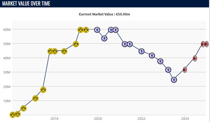 本賽季AC米蘭雖然經(jīng)歷了換帥等風(fēng)波,但普利西奇依然保持著穩(wěn)定輸出。26歲的普利西奇身價(jià)也從離開切爾西時(shí)的2500萬歐,漲到了5000萬歐。