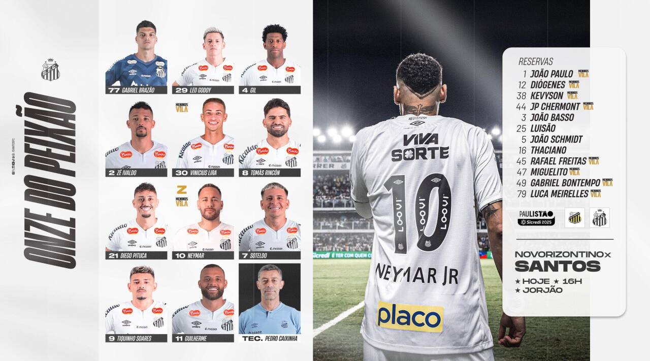 2月10日訊 在本輪圣保羅州聯(lián)賽的一場比賽中,桑托斯客場對陣新奧里藏蒂諾,賽前,桑托斯公布了本場比賽的首發(fā)陣容,如下: