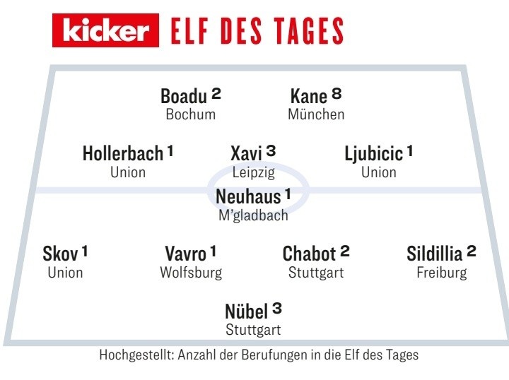 2月10日訊 德甲第21輪已經(jīng)完賽,《踢球者》評出了本輪德甲最佳陣容,凱恩領銜。