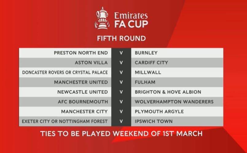 足總杯16強(qiáng)對(duì)陣:曼聯(lián)對(duì)陣富勒姆 曼城將戰(zhàn)普利茅斯 紐卡碰布萊頓
