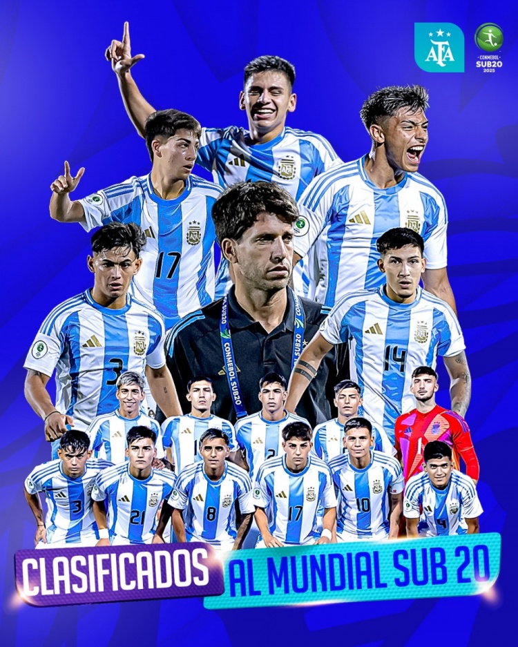 阿根廷隊(duì)官方社媒曬出海報(bào),慶祝晉級(jí)U20世界杯。