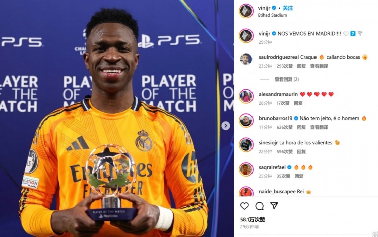 2月12日訊 皇馬在本輪歐冠客場(chǎng)3-2逆轉(zhuǎn)曼城,維尼修斯表現(xiàn)搶眼并當(dāng)選全場(chǎng)最佳球員。