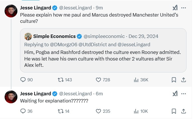 2月12日訊 一位球迷在2024年12月29日在社媒上評論表示,林加德&博格巴&拉什福德毀了曼聯(lián)文化,目前遭到了林加德本人的反駁。