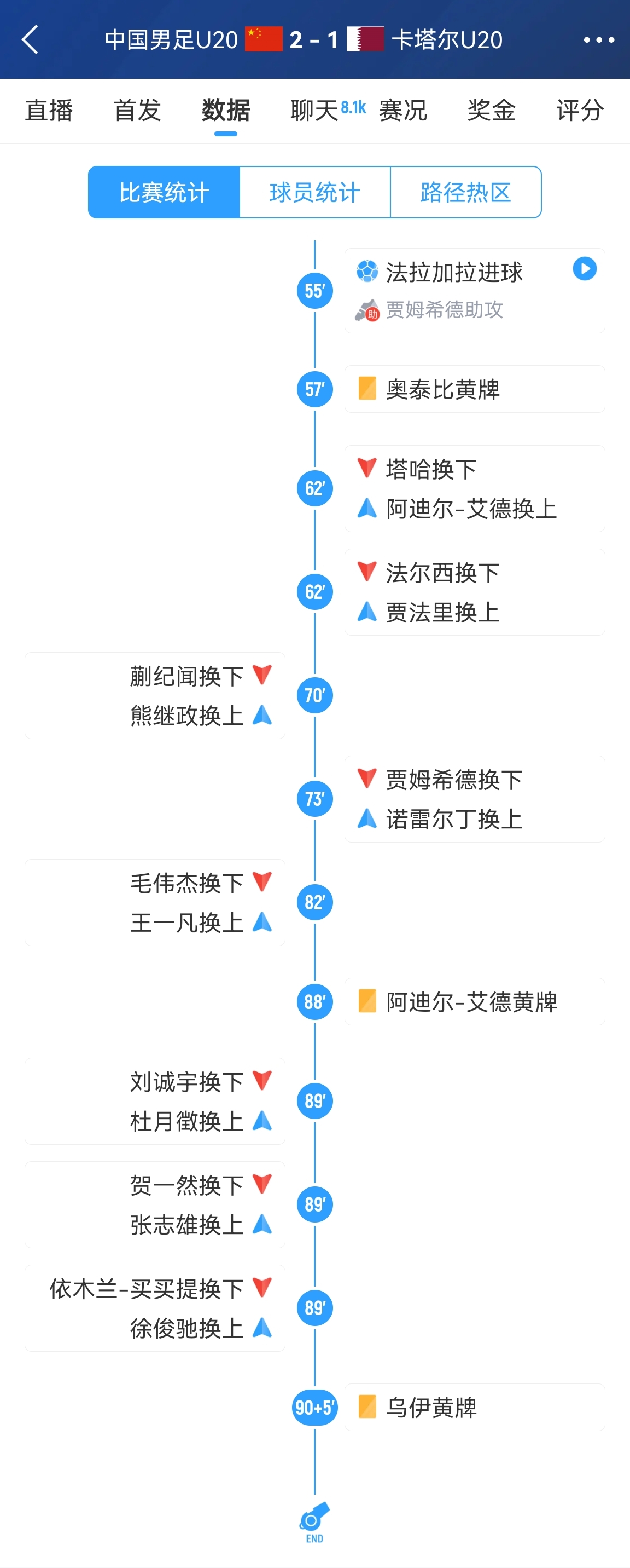 02月12日訊 U20亞洲杯首輪,U20國足2-1完勝卡塔爾,U20國足下半場一度壓制,多名球員露出疲態(tài),但主帥久爾杰維奇第70分鐘才首次換人調(diào)整,還是被動(dòng)換人,蒯紀(jì)聞?dòng)悬c(diǎn)小傷被熊繼政換下。