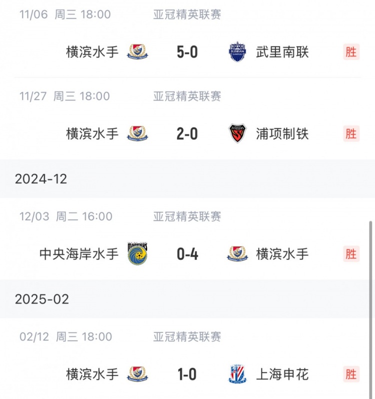 橫濱水手近4輪亞冠精英聯(lián)賽成績↓↓↓