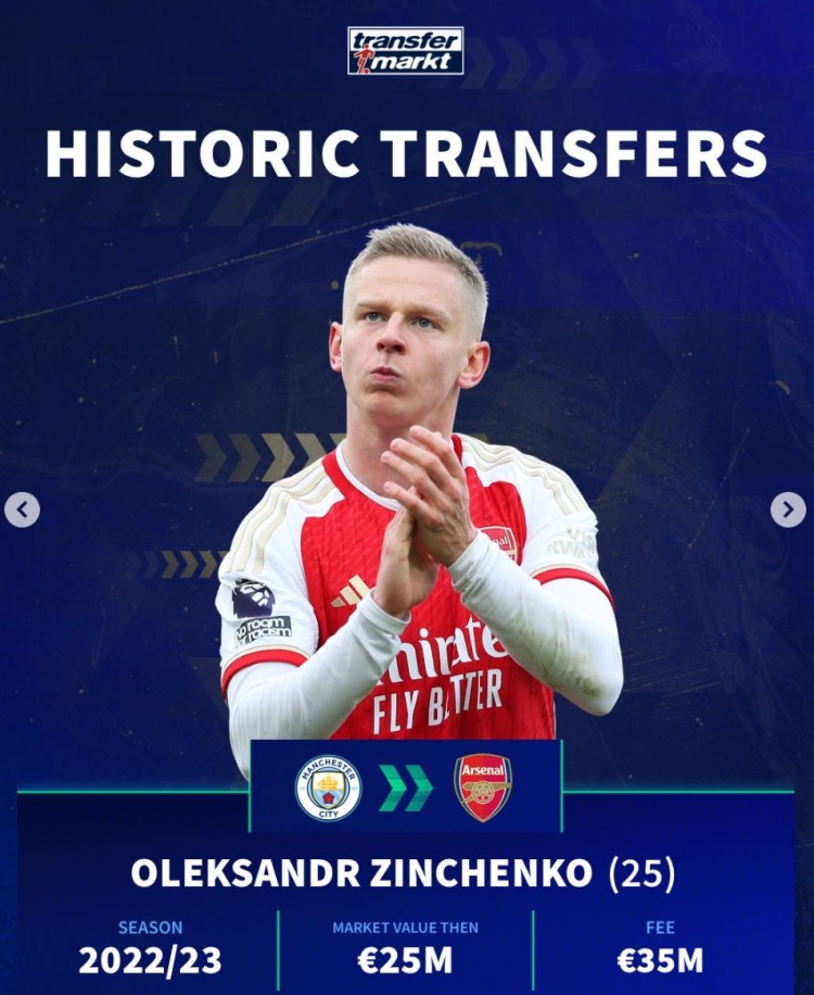 津琴科(曼城→阿森納):22-23賽季,25歲,身價2500萬歐,轉(zhuǎn)會費3500萬歐