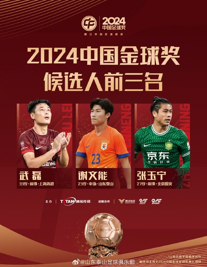 同時,山東泰山隊的謝文能也入選2024中國金球獎候選人前三名。期望王大雷和謝文能在俱樂部和國家隊的比賽中繼續(xù)發(fā)揚頑強拼搏、永不放棄的泰山足球精神,用他們的實力和激情為中國足球貢獻力量。