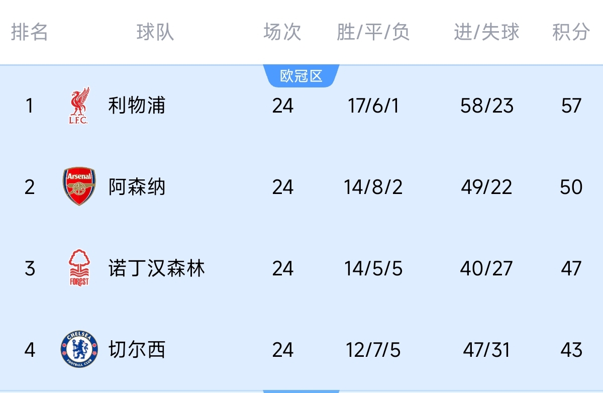 五大聯(lián)賽榜首球隊(duì)領(lǐng)跑優(yōu)勢(shì):