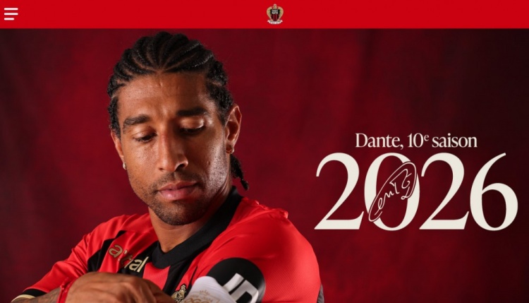 2月14日訊 尼斯俱樂(lè)部官方宣布,和巴西41歲中衛(wèi)丹特續(xù)約至2026年。