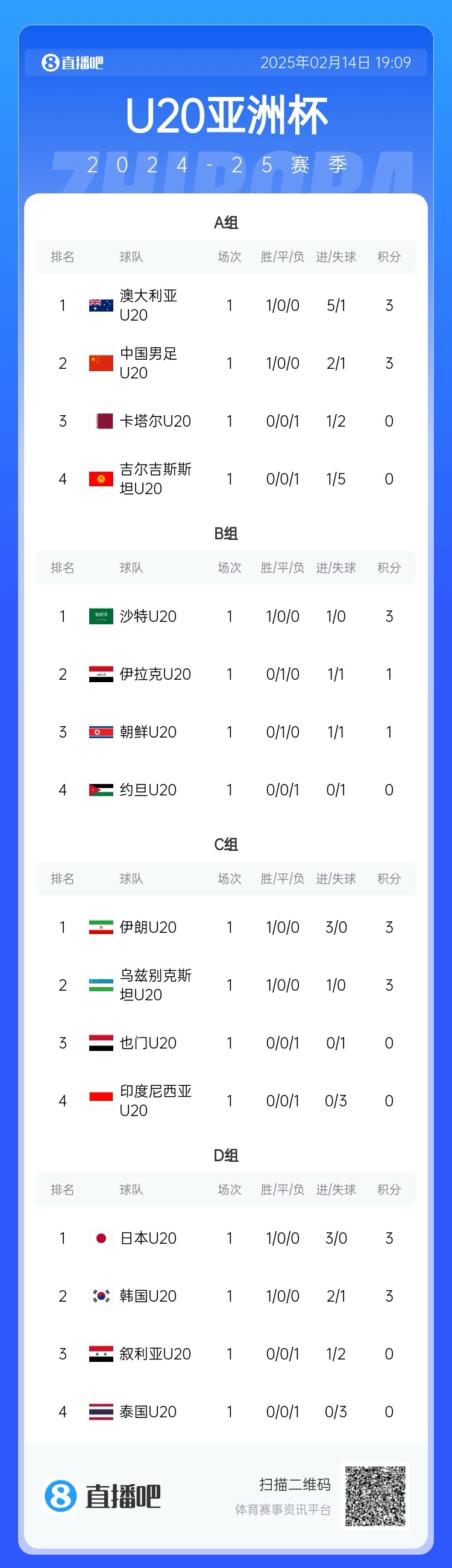 2025年02月12日 U20亞洲杯-澳大利亞5-1吉爾吉斯斯坦迎開門紅 后者15日將戰(zhàn)國青