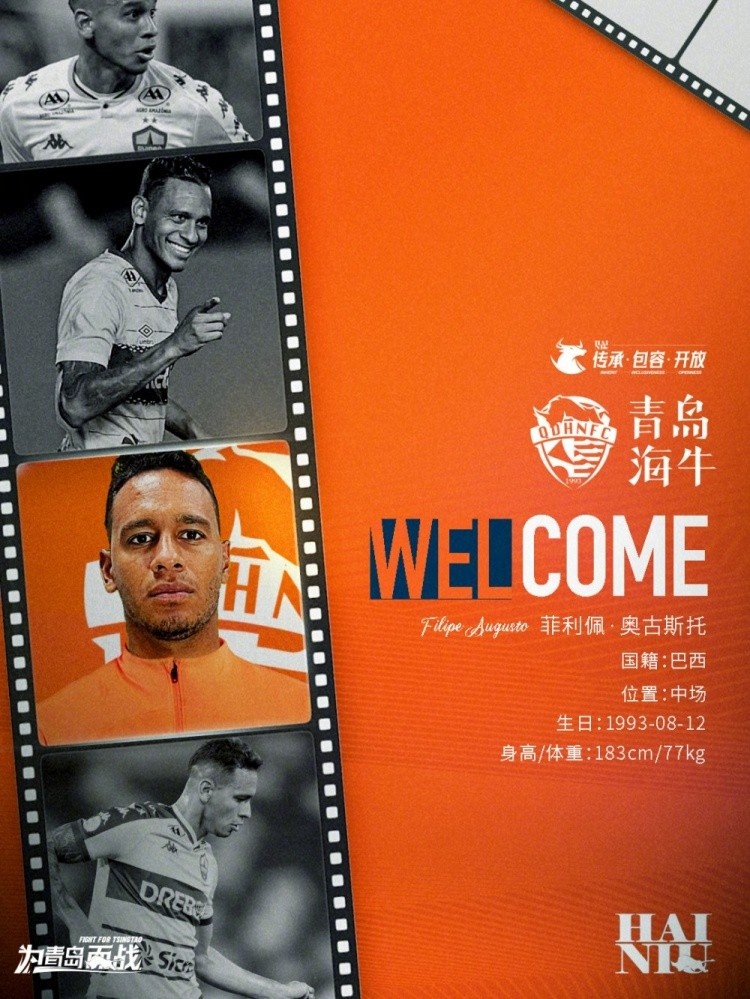 2月15日訊 昨天下午,青島海牛足球俱樂部官宣了前巴西國奧隊球員、本菲卡舊將費(fèi)利佩-奧古斯托正式加盟的消息,雙方簽訂了年限為“1+1”的工作合同。據(jù)記者孫飛報道,海牛集齊了新賽季的5名外援,今天球隊將與亞泰踢熱身賽。