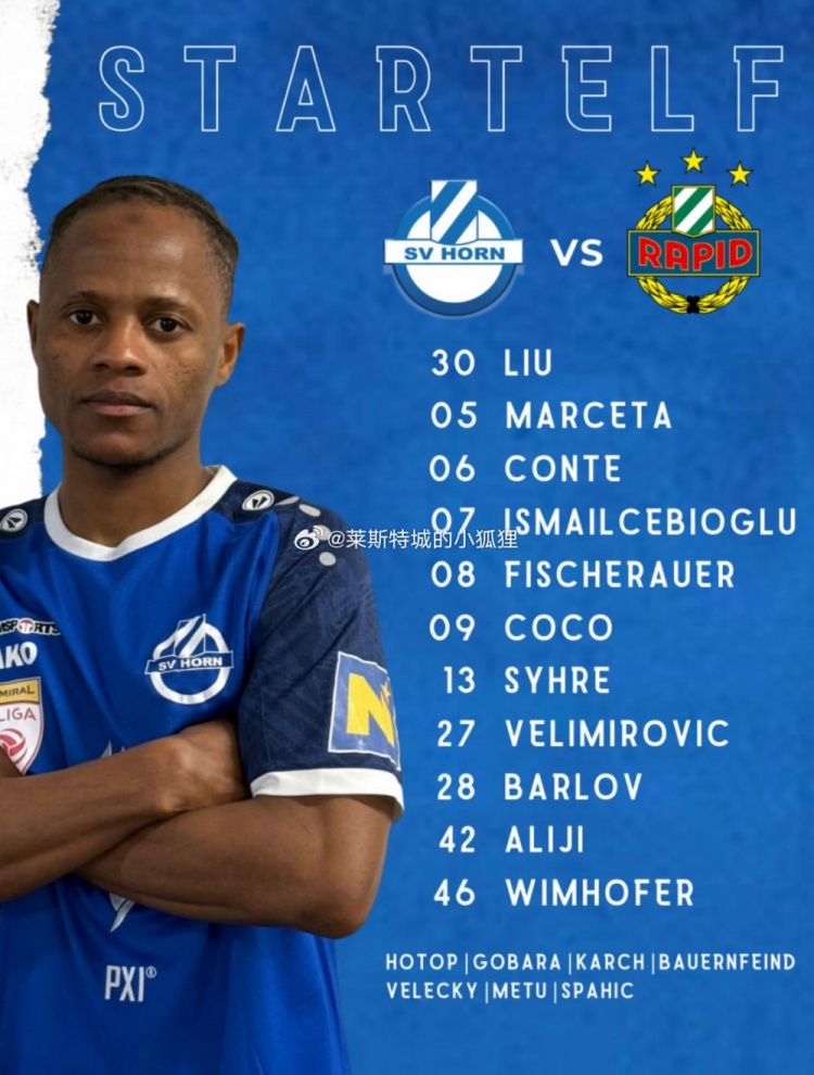 熱身賽SV霍恩1-0維也納快速二隊(duì),中國(guó)門將劉邵子洋首發(fā)出戰(zhàn)。