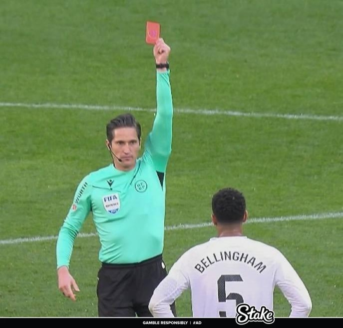 2月16日訊 西甲第24輪,皇馬客場1-1戰(zhàn)平奧薩蘇納,貝林厄姆因?qū)χ鞑帽秩炯t。在裁判報告中,主裁表示,球員在距離自己數(shù)米遠(yuǎn)的地方,對他說了“Fxxk you”。賽后,貝林厄姆和安切洛蒂均表示裁判和他們之間存在誤會。